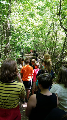 Next, we went on a nature hike. We learned many interesting facts along the hike. Our guide pointed out different vines, trees, shrubs, ground cover, ferns, mosses, etc. The wooded trail is very nice and easy to walk. There is so much to see and take in during the walk. We even saw a lizard!