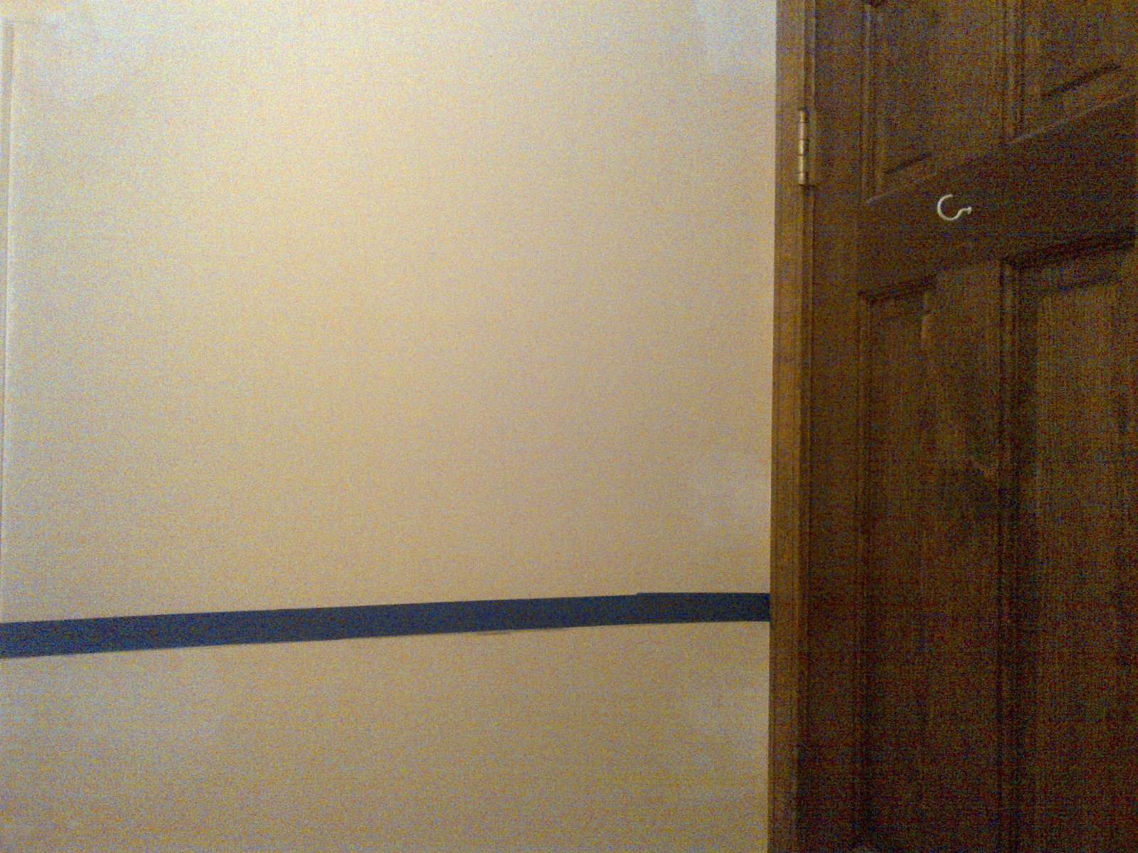 I had originally planned to paint all the walls a bright sunny yellow, but then started to ponder if that was such a good idea. Little Man is still young and has a horrible tendency to run his hands over the walls. Light colors + little boy = dirty walls! So I decided to remedy the problem like I did in the hallway. Brown on the bottom portion of the walls and yellow on the top.
